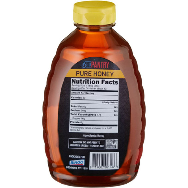 Мед BluPantry поставляється у пляшках об'ємом 16 ранців з легким кришталем, тому мед не протікає. Це природний солодкий підсолоджувач з меншою кількістю калорій, ніж звичайний тростинковий цукор. Мед BluPantry ідеально підходить для випічки, заправок і маринадів. Насолоджуйтесь цим медом протягом всього року.