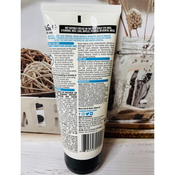 Крем для депіляції швидкої дії для швидкої й безболісної видалення волосся в домашніх умовах! Крем для видалення волосся Nad's for Men забезпечує безболісне видалення волосся для чоловіків із результатами, які зберігаються довше, ніж після гоління. Крем підвищеної міцності розроблений спеціально для жорсткого волосся на тілі та діє лише за 4 хвилини. (За відгуками, бажано тримати 10-15хв для бажаного результату)