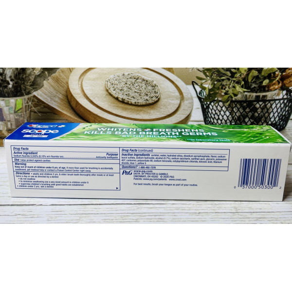 Відбілювальна зубна паста Crest Complete Multi-Benefit Whitening Scope являє собою унікальний гігієнічний засіб з догляду за порожниною рота, що забезпечує відчуття незвичайної свіжості дихання до 7 разів довше, порівнюючи зі звичайними зубними пастами. Регулярне застосування цього продукту — запорука природної білини ваших зубів.