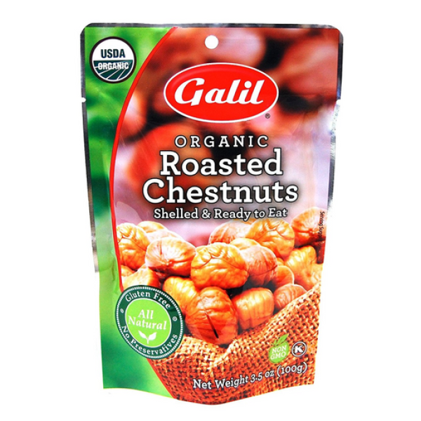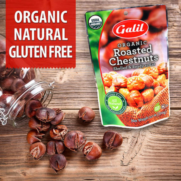 Galil Обсмажені Каштани - чудова натуральна закуска. 100% органічні вирощені каштани ручно відібрані і фаєром обсмажені для виняткової якості і смаку. Galil Обсмажені Каштани ідеально підходять для приготування і выпічки у всіх вашіх улюблених рецептах: супи, начинки, печиво і торти. І найголовніше - вони корисні і добрий джерело вітаміну C і клітковини!