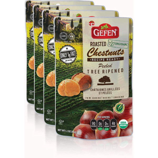 Гефен органічні печені каштани готові до насолоди. Каштани відмінно підходять для запікання, начинок, супів, топінгів, десертів і, звичайно ж, перекусу. Без доданих консервантів або ароматизаторів і як джерело вітаміну C, органічні печені каштани Гефен містять всю чисту користь природних каштанів без зайвої роботи. Так що вперед і спробуйте готові до споживання кількаштук органічних печених каштанів Гефен і хазяйствуйте розумно!