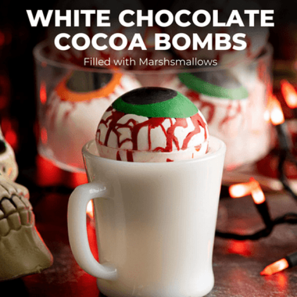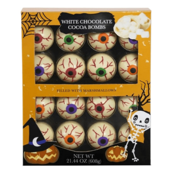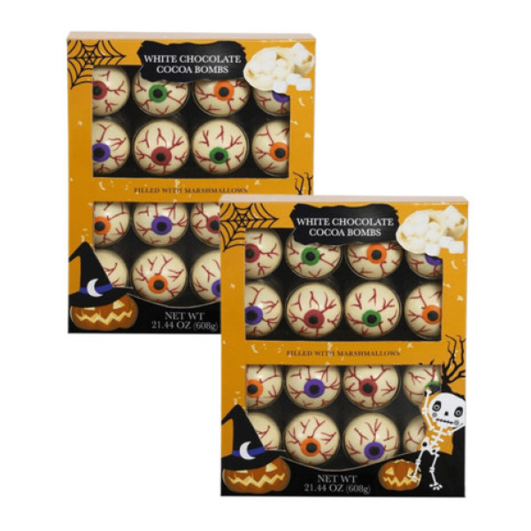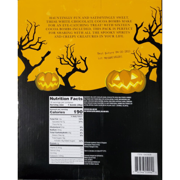 Готові святкувати Хеллоуїн з неймовірно миловидними Какао-бомбами з білим шоколадом? Насолоджуйтеся чудовими вечорами за гарячою шоколадною насолодою! Цей набір включає 16 неймовірних Какао-бомб із білим шоколадом, що додають атмосфери свята Хеллоуїна особливий колорит. Це декоративні сфери, які ефектно розкриваються, виливаючи у вашу чашку гаряче молоко, і тим самим створюють неймовірно ароматну та смачну шоколадну насолоду. Два пакети з 16 чудових Какао-бомб - це достатньо, щоб насолодитися чарівністю Хеллоуіну з друзями та родиною. Розкрийте секрет Хеллоуїну з нашими Какао-бомбами з білим шоколадом!