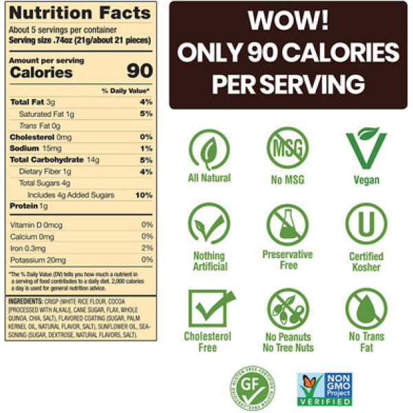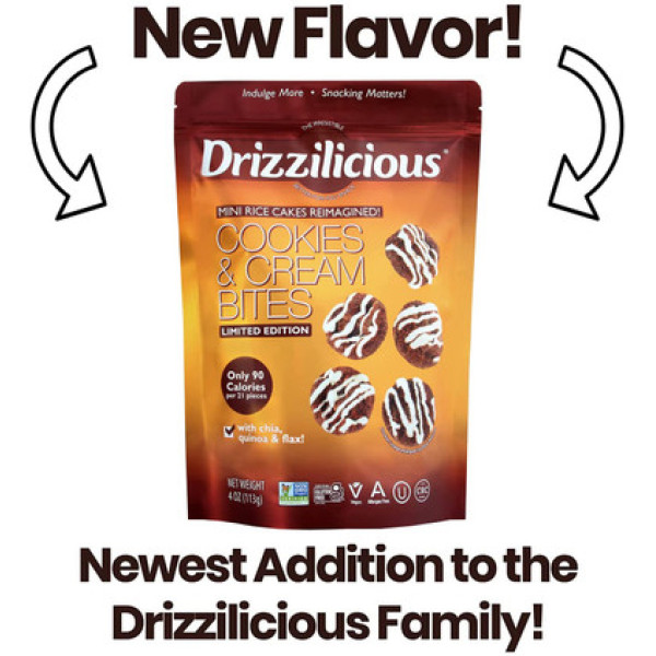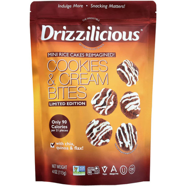 До новини світу снеків - Drizzilicious Cookies and Cream Bites, 4 унції. Завжди приємно здивуватися, як у такий маленький перекус можна впихнути так багато смаку і користі. Ці хрусткі шматочки з рису вкраплені витонченим ніжностям. Вони робляться на основі корисного бурого рису, який додається до натуральних суперфудів - кіноа, чіа та льону. Шматочки Drizzilicious Cookies and Cream Bites - це ідеальне поєднання смаку, повноцінних круп та насолоди. Тільки 90 калорій на порцію - маленька розумна смакота, про яку можна добре подумати! А ще Drizzilicious Cookies and Cream Bites - це легка альтернатива шоколадним печивам, солодкому й хрусткому задоволенню, яке не перетворить ваш раціон на шалений харч. Насолоджуйтеся цим безгріховим шоколадним сладощем, на яке ви будете палко зазирати без совісті. Вибирайте здорове та дієтичне життя, не обдуривайте себе "ловицею для схуднення", а радуйтеся шматочкам Drizzilicious Cookies and Cream Bites. Щасливим бонусом є відсутність глютену, молока, штучних смакових добавок, а також консервантів. Для нас важливо дотримуватися природи, тому Drizzilicious Cookies and Cream Bites є натуральним продуктом, який не містить ГМО і являється веганським. Не хочете перебирати взагалі, але хочете трохи задоволити свої солодкі пристрасті? Так, раціон від гіпертонічних ресторанів - це добре рішення, тому Drizzilicious Cookies and Cream Bites легко поєднуються в єдину гармонію з йогуртом, кашами, морозивом "nice", мусом, кавою - тим чим завгодно, якщо вам захочеться пригощати себе маленькими шматочками незбагненної насолоди. Розумний перекус, який можна скуштувати зараз!