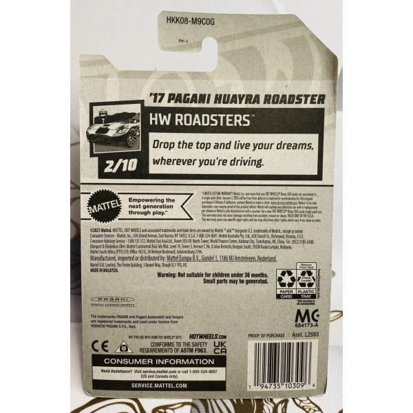 Колекційна машинка Hot Wheels 17 Pagani Huayra Roadster