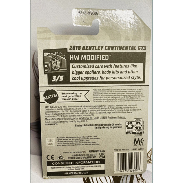 Колекційна машинка Hot Wheels 2018 Bentley Continental GT3