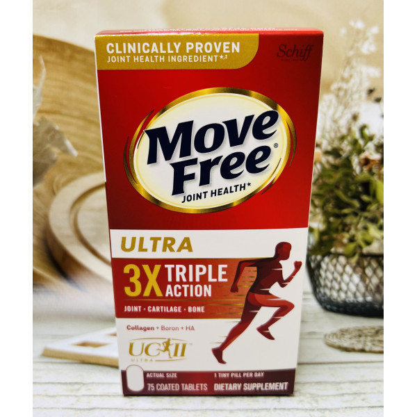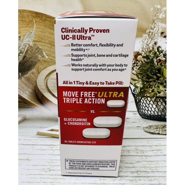 Move Free Ultra Triple Action стимулює загальне, хрящове та кісткове здоров'я всього за одну крихітну таблетку на день для більшої свободи пересування.