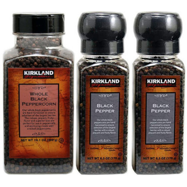 Перці Kirkland Signature є найбільшими та найароматнішими чорними перцем, зібраним на узбережжі Малабару в Індії. Серед переваг цього набору: один пакет Kirkland Whole Black Peppercorn, що містить 14,1 унції перцю, та два помольника перцю Kirkland, що містять 6,3 унції кожен.