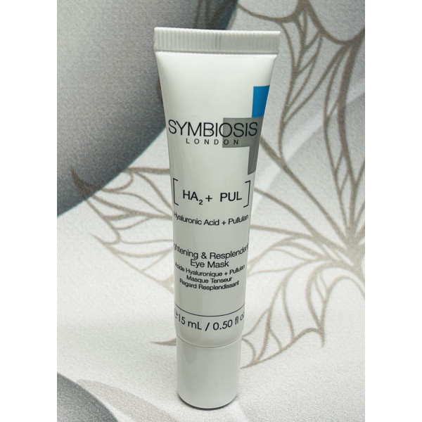 Маска для очей Symbiosis Tightening & Resplendent Eye Mask збагачена гіалуроновою кислотою, пулуланом і маслом ши, помітно зменшує набряклість, тонкі зморшки та темні кола під очима, надаючи помітно молодий й оновлений погляд.