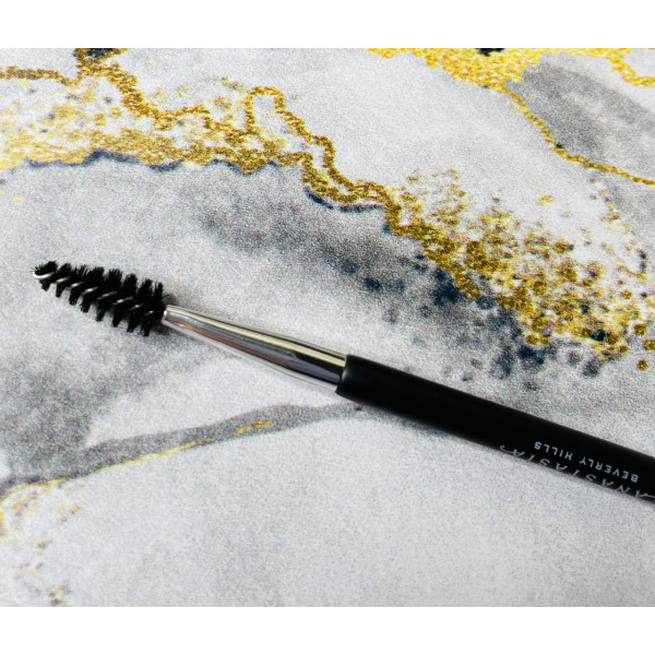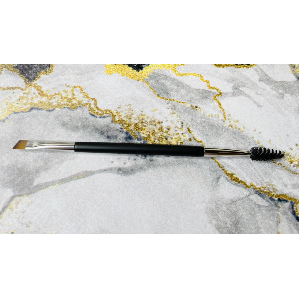 Створено для ідеального нанесення продуктів для брів. Цей двобічний пензель являє собою пензлик із високоякісних синтетичних волокон на одному кінці та щіточку для вирівнювання на іншому. Кутовий зріз пензля на одному кінці ідеально підходить для тіней, воску, розтушовування олівця. Щіточка розподіляє та змішує нанесені продукти рівномірно, для природного вигляду.
