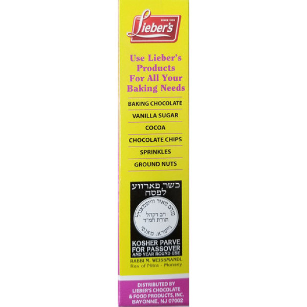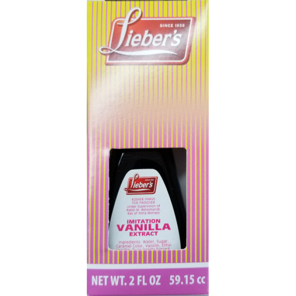 Lieber's Imitation Vanilla Extract, об'ємом 2 фл oz, це ідеальне рішення для тих, хто шукає недорогий варіант чистого ванільного екстракту. Виготовлений з 100% преміальних компонентів, він забезпечує багатий ванільний смак, який не зникне під час приготування або заморожування. Цей продукт є невід'ємною частиною асортименту як для професійних кондитерів, так і для початківців. Додайте його до тортів, печива та інших випічок, щоб надати їм неповторного смаку. Крім того, цей продукт є кашерним, тому його можна використовувати як на Пасху, так і протягом всього року. Lieber's Imitation Vanilla Extract - ваш невід'ємний помічник у створенні кулінарних шедеврів!