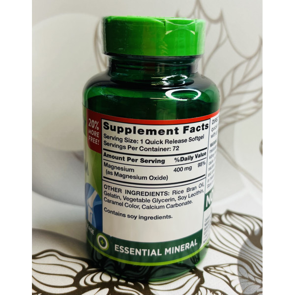 При бідному раціоні або посилених витратах мінералів може розвинутися дефіцит магнію, що призводить до пригніченого настрою, швидкої стомлюваності, судоми в ногах, порушення сну, депресії. При таких симптомах брак рекомендовано купити nature's Bounty Magnesium 500 mg і запобігти серйозні проблеми, які здатний спровокувати тяжкий дефіцит магнію.ХарактеристикиОсновніВиробник
