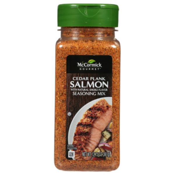McCormick Gourmet Cedar Plank Salmon Seasoning Mix, 12.75 oz, - це природна суміш ароматів та смаків для приготування лосося. Чуттєва комбінація часнику, цибулі та чилі перцю насичує страву ніжним солодким і гострим смаком. Для надання особливого малюнку соковитому м'ясу лосося перед гриллюванням або підсмажуванням використовуйте природний аромат кедра. McCormick Gourmet Cedar Plank Seasoning Mix також чудово підходить для морепродуктів, особливо креветок. Додайте неповторний смак та аромат своїм стравам за допомогою цього соусу.