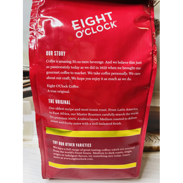 Від Латинської Америки до Східної Африки компанія Eight O’clock ретельно шукає у світі 100% арабіку преміум-класу з правильним смаком. Майстри дають каві середню обсмаженість, забезпечуючи солодкі та фруктові нотки з добре збалансованим післясмаком. Незважаючи на те, що багато хто вважає Eight O’clock ідеальним початком дня, він однаково зручний як підбадьорливий напій середини ранку, так і як ситний десертний напій.