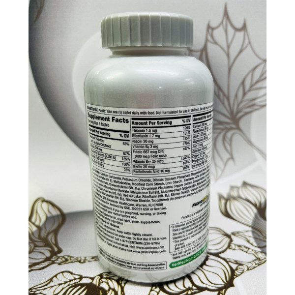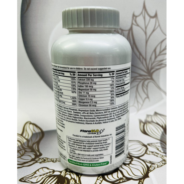 Centrum Silver Multivitamin for Adults 50 Plus пропонує вам індивідуальну полівітамінну/мультімінеральну добавку для людей похилого віку, яка допоможе підтримувати здоров’я всього організму. Цей полівітамін містить вітамін D і кальцій для підтримки міцності кісток, вітаміни групи B для підтримки здоров’я серця, цинк для підтримки нормальної роботи мозку, лютеїн і вітаміни A, C і E для підтримки здоров’я очей.