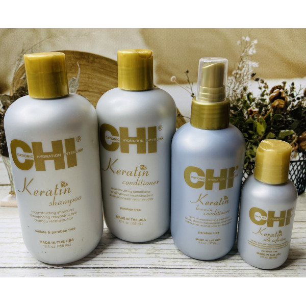 Набір CHI Keratin шампунь, кондиціонер, спрей і шовк оригінал