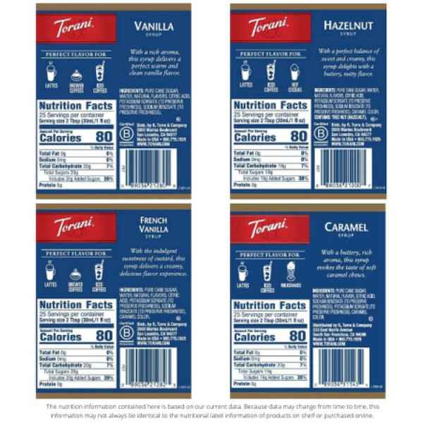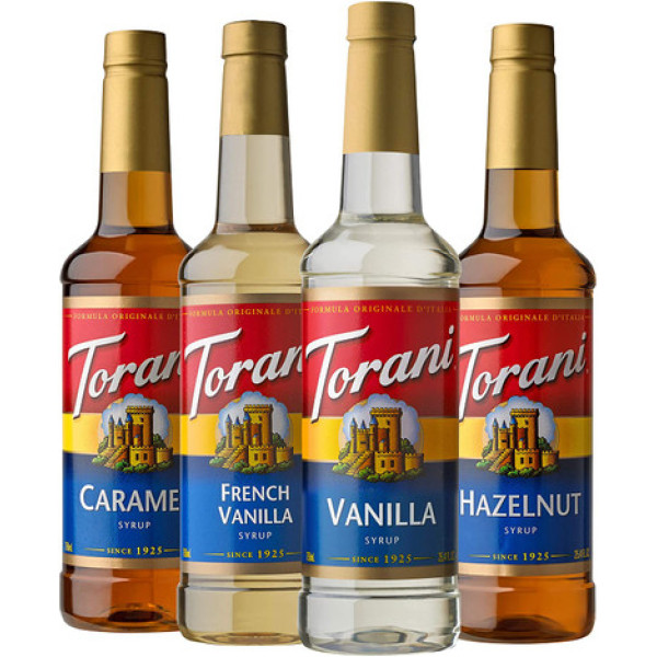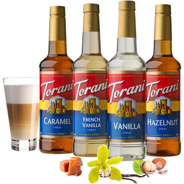 Torani Variety Pack Caramel, French Vanilla, Vanilla & Hazelnut, 25.4 Ounces (Pack of 4)