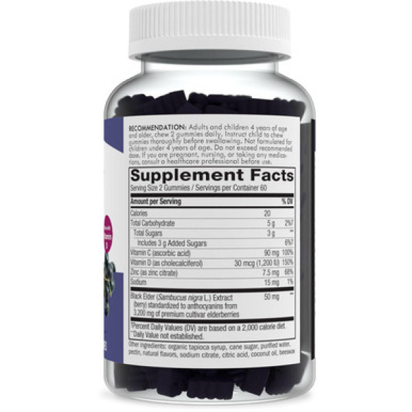 Nature's Way Sambucus Elderberry Gummies - це чудове джерело вітаміну С та цинку та висококонцентрований, преміум екстракт чорниці для підтримки імунітету*. Sambucus Gummies містять висококонцентрований (64x) екстракт чорниці, який виготовлено з 3 200 мг чорниці на порцію. Чорниця містить природні антоціаніни, які надають антиоксидантну підтримку; антиоксиданти допомагають нейтралізувати вільні радикали*. Чорницю використовують століттями для традиційної підтримки імунітету, і ви можете насолоджуватися підтримкою протягом усього року*. Конфетки виготовлені на основі пектину, а не желатину, і підсолоджені органічними тапіока та тростинками цукру; без глютену, без інгредієнтів, походящих від дріжджів, пшениці, сої, молока, яєць, арахісу чи штучних фарб.