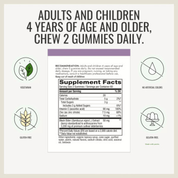 Nature's Way Sambucus Elderberry Gummies з вітаміном С та цинком, 120 штук