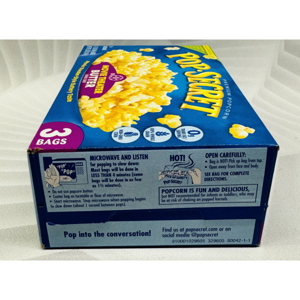Упаковка складається з трьох пакетиків попкорну, який потрібно просто покласти в мікрохвильовку.