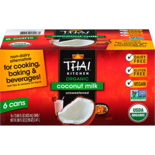Thai Kitchen Organic Unsweetened Coconut Milk, 13.66 Fl Oz (Pack of 6) - органічне кокосове молоко від Thai Kitchen - це повнота жиру без додавання підсолоджувачів. Цей продукт є негенетично-модифікованим органічним, безглютеновим і не містить консервантів. Воно також підходить для веганів, при раціоні кето та палео. Органічне кокосове молоко - це важлива складова багатьох класичних тайських страв. Завдяки Thai Kitchen Organic Unsweetened Coconut Milk ви зможете насолодитися аутентичним смаком тайської кухні вдома. Забезпечте собі якісне та органічне кокосове молоко від Thai Kitchen.