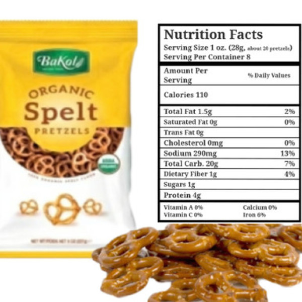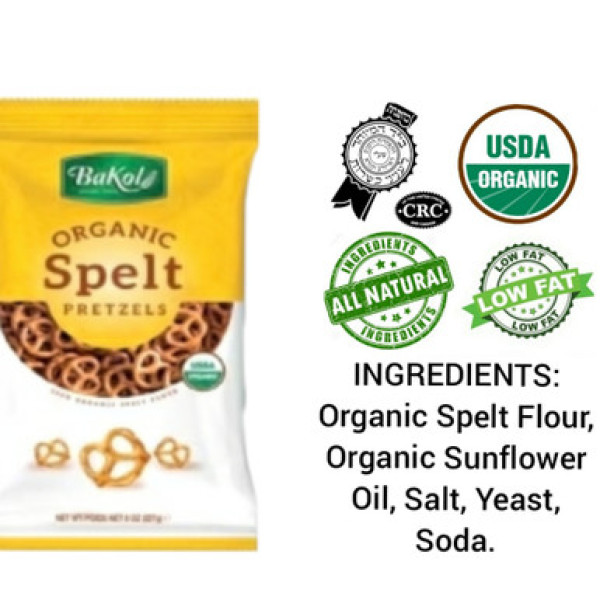 Органічні солодкі Бакол Спельт Претцельс солоні, 8 унцій.