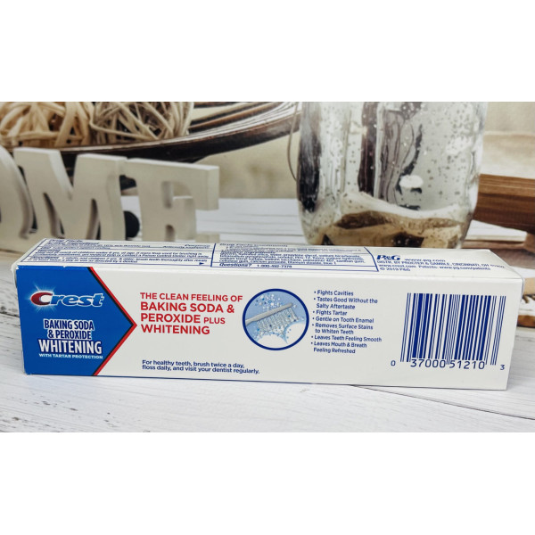 Кожен мріє про красиву білосніжну посмішку. Але не кожен знає, що завдяки відбілюючій зубній пасті CREST BAKING SODA можна отримати бажаний результат при щоденному використанні. Ця зубна паста ідеальна для любителів чаю, червоного вина, кави та тютюну. Найголовніше - ця зубна паста безпечно відбілює зуби і комплексно доглядає ясна та зуби. При щоденному використанні Ваші зуби стануть здоровими, а також набудуть блиску та природної білизни. Ця зубна паста подарує Вам ні з чим не порівнянне відчуття свіжості, а також захист від карієсу та зубного каменю.