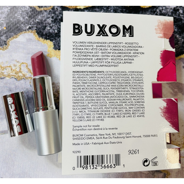 Кремова помада з повним покриттям, яка згладжує й наповнює губи, роблячи губи пухшими й об'ємнішими. Помада насичує губи стійким атласним кольором і поколюванням. Гіалуронова кислота та кондиціонувальні олії наповнюють, згладжують і зволожують, а кінчик краплеподібної форми легко охоплює кожен вигин, щоразу роблячи губи помітно більш пухкими одним рухом.