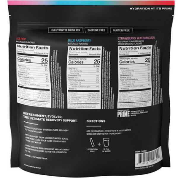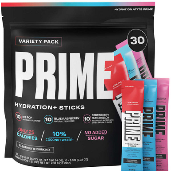 Prime Hydration + Electrolyte Powder Mix Sticks Variety Pack - продукт з 30 порціями електролітно-повноцінного напою для кращого зволоження