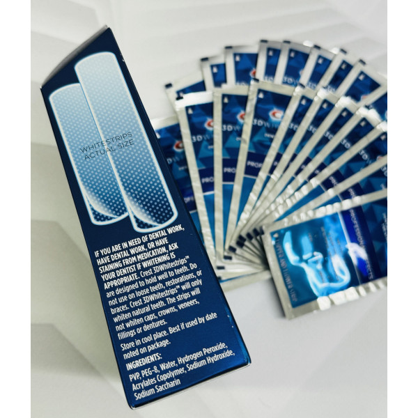 • Перед застосуванням вибілювальних смужок Crest Whitestrips 3D White Professional Effects ретельно прополощіть рот для видалення залишків їжі.