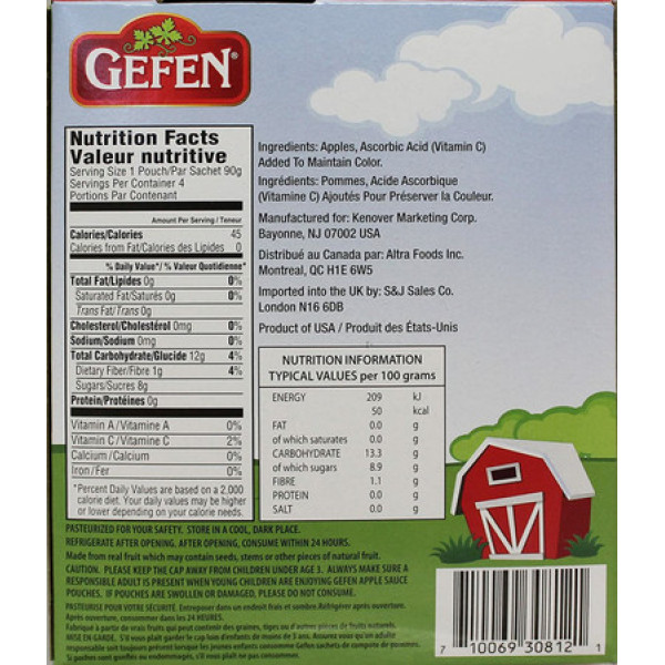 Gefen No Sugar Added Apple Sauce Pouches обладають натуральним смаком та високою смачністю. Упаковка містить 4 соковитих пломбірки, які можна легко стиснути, що робить їх ідеальним вибором для невимушених перекусів. Без вмісту цукру і глютену, ці прекрасні пломбірки нагадують про природність і чистоту. Вони стануть прекрасним додатком до сніданку, обіду або вечері і стануть справжнім задоволенням для вашої сім'ї. Кошерні для Пасхи та використання протягом усього року! Gefen No Sugar Added Apple Sauce Pouches - смачний шматочок природи просто у вашій руці.