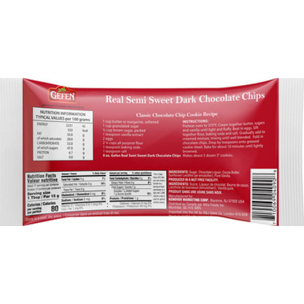 Оберіть Gefen Semi-Sweet Chocolate Chips і отримайте справжню насолоду від шоколаду без зайвих складників. Тепер приготування смачних страв стає ще простішим та екзотичним!
