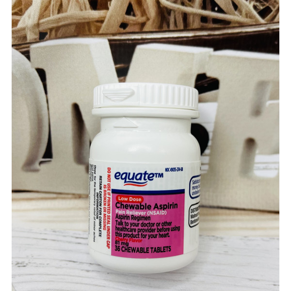 Серцевий аспірин жувальний зі смаком вишні Equate Low Dose, 81мг 36шт оригінал