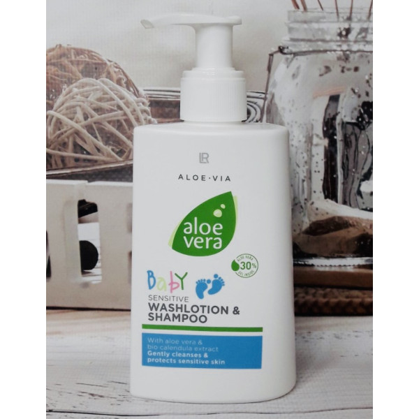 Шкіра малюка ніжна та гіперчутлива, тому вимагає особливого дбайливого догляду. LR Health&Beauty — це аптечна безпечна косметика німецької якості. Шампунь-гель для купання дітей Aloe Vera Baby Sensitive Washlotion And Shampoo м'яко та делікатно очищає волосся, шкіру голови та тіла дитини, не пересушуючи їх. Засіб містить мийні компоненти натурального походження, тому його можна використовувати навіть для немовлят.