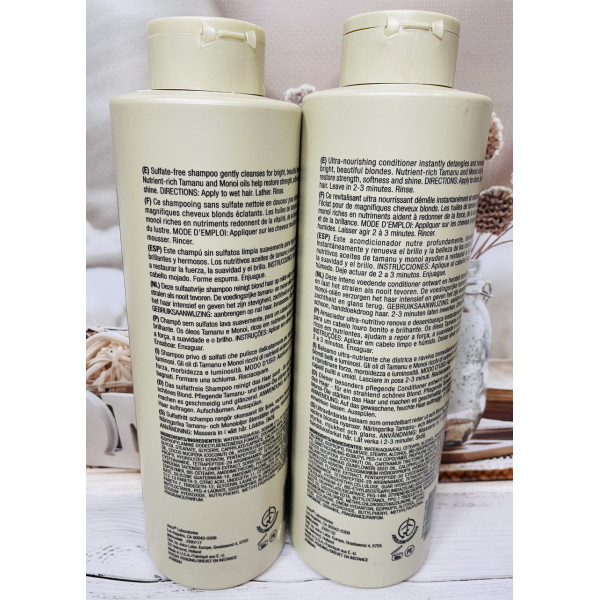Продукт основа на системі Blonde LifeTM, яка чудово підхопить блондинкам і тим, хто хоче освітлити пасма, не зашкодивши їх стану. Він дарує волоссю гарний блиск і ефектний об'єм. У складі шампуню аргінін, що має чудові зміцнювальні властивості, і суміш поживних екзотичних, багатих на поживні речовини олій таману та моної. Безсульфатна формула засобу запобігає небажаній жовтизні, крихкості та ламкості волосся, нейтралізує хлор і небезпечні мікроелементи, які містяться у воді.