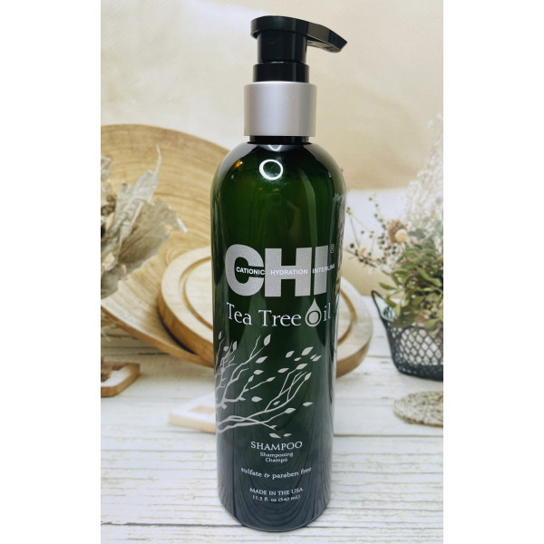 Шампунь з маслом чайного дерева новий винахід американського бренду CHI. Шампунь CHI Tea Tree Oil крім очищаючих властивостей, благотворно впливає на кутикули волосся, зберігаючи баланс вологи шкіри голови.
