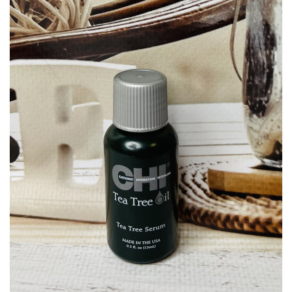 Сироватка з оліями чайного дерева призначена для захисту волосся. CHI Tea Tree Oil Serum містить коктейль натуральних олій, які наповнюють волосся і шкіру голови необхідними поживними речовинами для шовковистості, гладкості та здорового зовнішнього вигляду, а також, маючи у своєму складі УФ-фільтри, забезпечують надійну захист від сонячних променів.