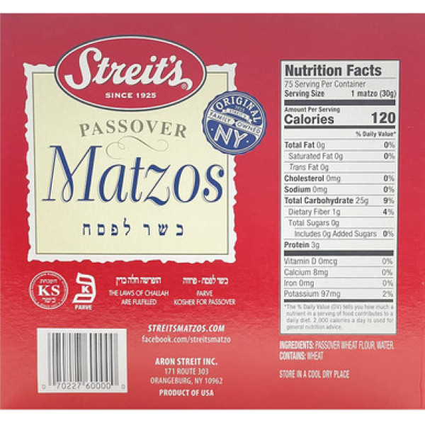 Спасибі за вказівку! Назва товару: Matzos Streit's Passover Original, 5 фунтів.