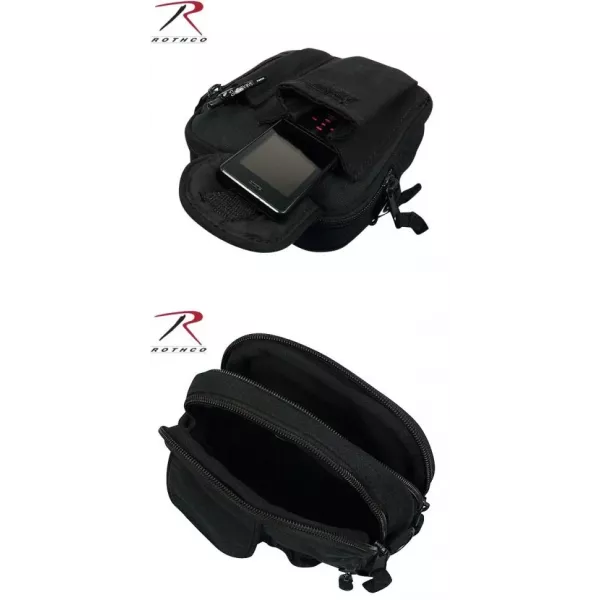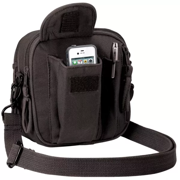 Вінтажна сумка-органайзер для документів. Два великі відділення з молниями. Внутрішній прихований кишенька з молниєю. Зовнішня врізна кишенька з молниєю. Зовнішня кишенька для ручки. Зовнішня кишенька з клапаном на липучці для мобільного телефона. Регульований плечовий ремінь. Кріплення на ремінь. Розміри: 15х17х8см. Металеві карабіни та зажими. Матеріал: розтягнутий і застарілий щільний 100% бавовна. Колір: чорний. Виробник: Rothco, США. Виготовлено в Індії.