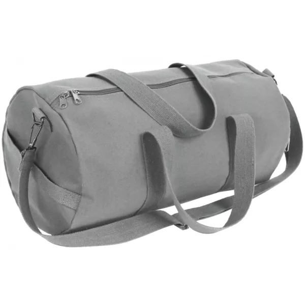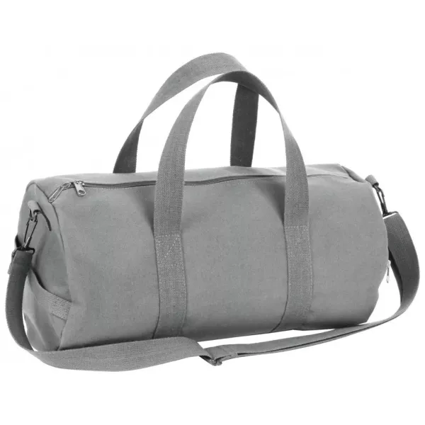 Спортивна класична бавовняна камуфльована вещева сумка з плечовим ременем. Ідеальна для спортзалу або щоденного використання. Ремені сумки виконані з бавовняної стропи оливкового кольору. Основний відділ на блискавці. Регульований знімний бавовняний плечовий ремінь (кріплення до D-кілець на сумці на двох металевих карабінах). Посилена по периметру ручки для перенесення сумки. Кишенька на блискавці на одному торці сумки. Розміри: 48 x 23 см. Матеріал: 100% важка бавовна щільного переплетення. Колір: сірий. Виробник: ROTHCO Morris Rothenberg & Son, Inc. (NY, USA). Виготовлено в Індії для США.