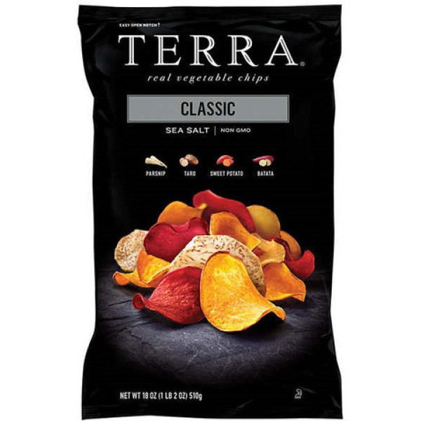 Terra Classic Vegetable Chips Sea Salt - це суміш чіпсів з таро, солодкої картоплі, батату, пастернака та червоного картопляного кореня, приправлених морською сіллю.