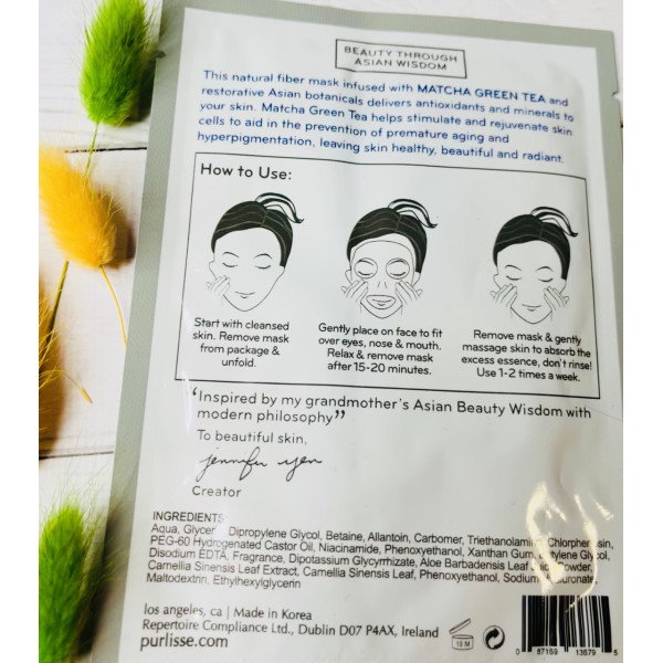 Тканинна маска з матча PURLISSE Matcha Green Tea оригінал