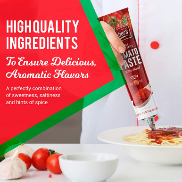УДОБНОЕ ИСПОЛЬЗОВАНИЕ И ХРАНЕНИЕ – Всегда готовьте свежее! Наше итальянское томатное пюре поставляется в удобной тюбиковой упаковке, что облегчает контроль порции. Винтовая крышка плотно закрывает томатное пюре, предотвращая его порчу.