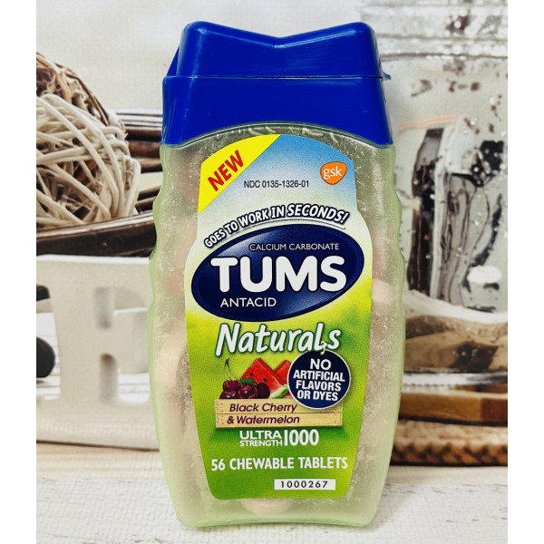 Цукерки від печії та болю у шлунку TUMS Вишня та кавун, 56шт оригінал