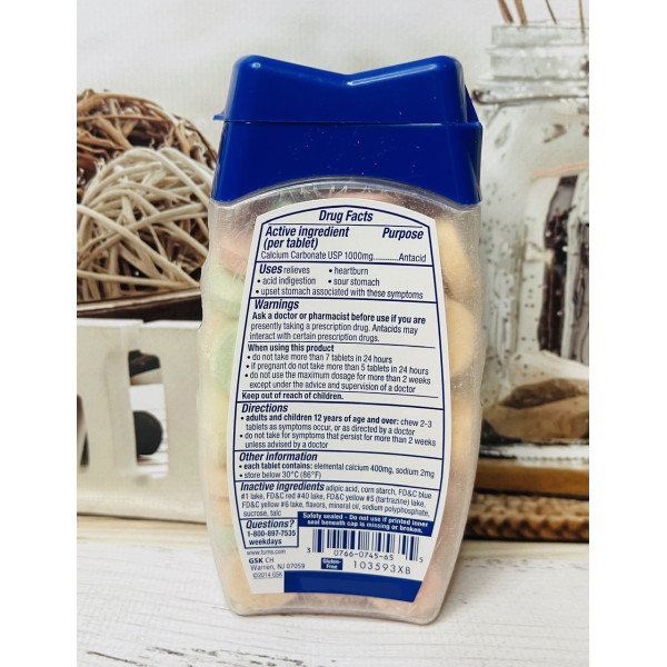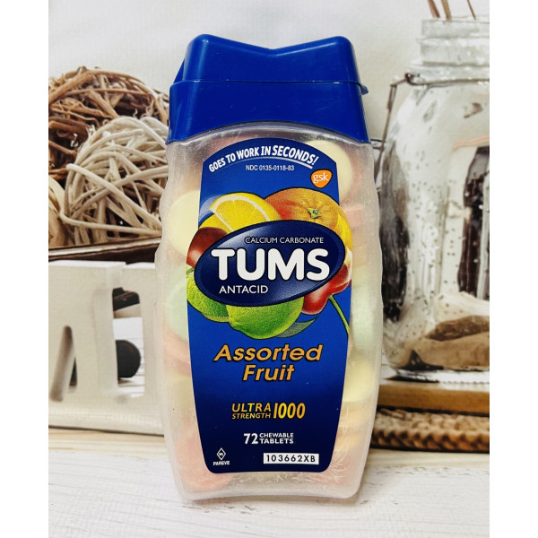 Цукерки від печії та болю в шлунку TUMS Фруктове асорті, 72шт оригінал
