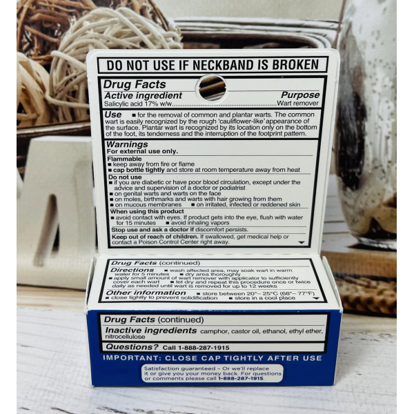 Бородавки можуть бути незручними та неприємними. Якщо їх не лікувати, вони можуть повністю зникнути за два роки. Однак вам не потрібно так довго чекати, щоб позбавитися набридливих бородавок. Ви можете взяти під контроль та легко видалити їх за допомогою цього рідкого засобу для видалення бородавок максимальної міцності. Ця потужна формула містить 17% саліцилової кислоти для безпечного та ефективного видалення бородавок. Просто наносите засіб для видалення бородавок один або два рази на день за допомогою зручної кисті-аплікатора.