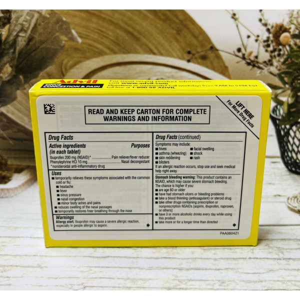 Жаропнижувач для дорослих та від закладеності носа Advil Sinus Congestion Pain Coated Tablets оригінал