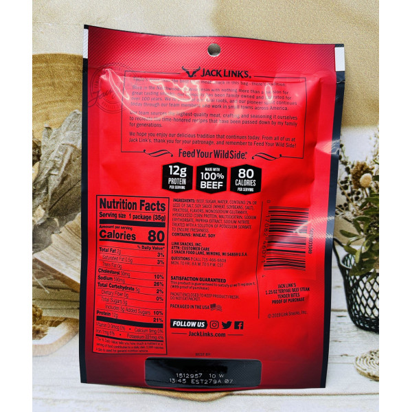 Упаковка содержит 35 грамм продукта, изготовленного из премиальной говядины с сохранением натуральных и оригинальных питательных элементов. Сушеное мясо от производителя Jack Link является №1 в сегменте здоровых мясных закусок в США. Компания Jack Link была основана в 1885 году и на сегодняшний день она производит более 100 видов мясных закусок, которые поставляются более чем в 40 стран.
