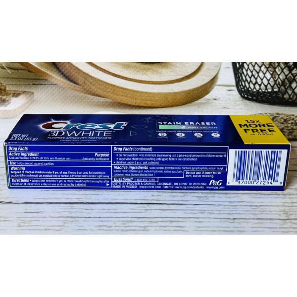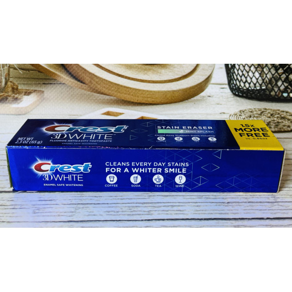 Вибілювальна зубна паста Crest 3D White Stain Eraser видаляє наліт, який накопичується щодня від чаю, кави, вина. Бережна до емалі та допомагає захистити від проблем із порожниною рота.