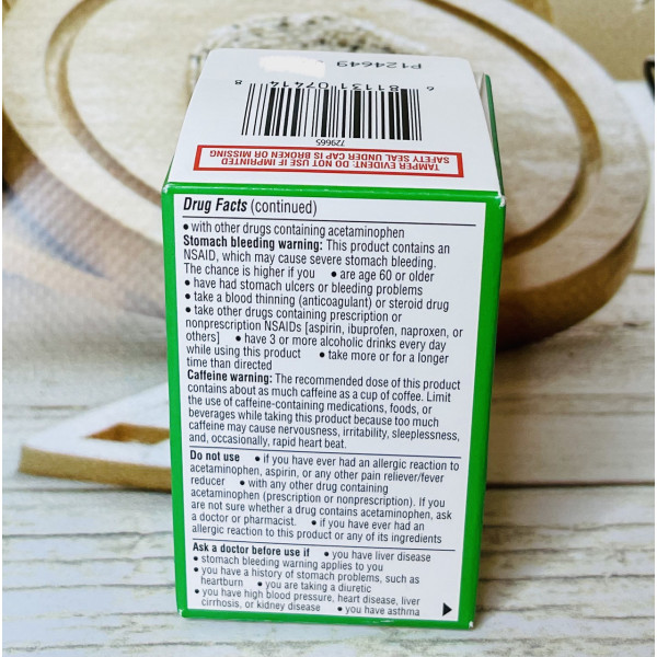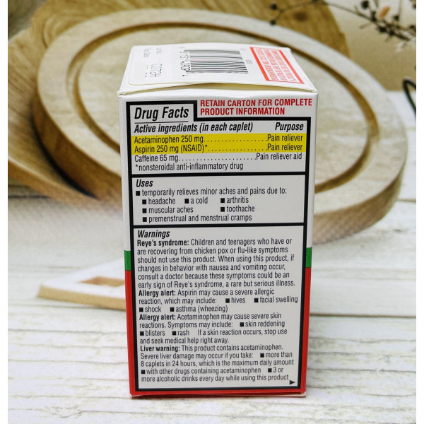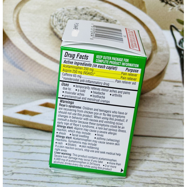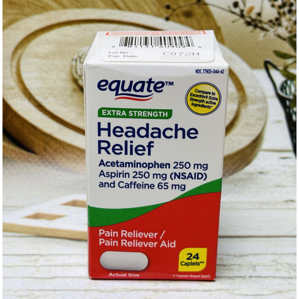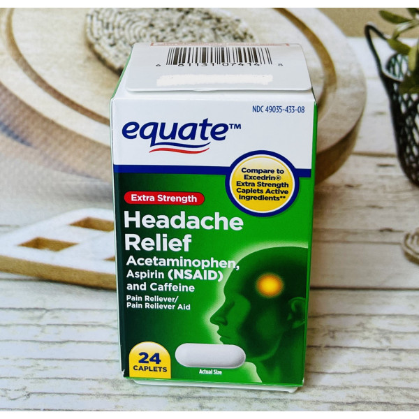 Equate Headache Relief – комбінований препарат від мігрені, що містить Acetaminophen (250mg), Aspirin (250mg), Caffeine (65mg).
