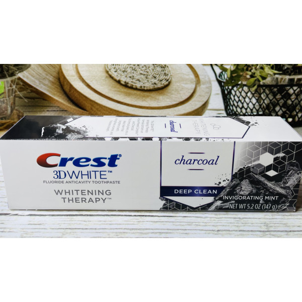 Якщо Ви хочете добитися білосніжної і здорової посмішки за короткий термін, тоді обов'язково зверніть увагу на новий продукт Crest 3D White Whitening Therapy Charcoal. Зубна паста з деревним вугіллям забезпечує дбайливий догляд за емаллю, видаляє поверхневі плями, залишаючи відчуття свіжості на весь день. Це не тільки ефективне відбілювання, але і глибока очищаюча терапія для Ваших зубів. Паста володіє приємним м'ятним смаком і містить в складі компоненти, які реминерализуют і зміцнюють зубну емаль. Вона має чорно-білий колір за рахунок наявності в ній вугільного порошку. При змішуванні цих шарів піна стає сірою і запускається процес відбілювання. Окремої уваги заслуговує той факт, що Crest 3D White Whitening Therapy Charcoal підходить навіть для людей з підвищеною чутливістю емалі. Застосування зубної пасти на основі деревного вугілля допоможе запобігти розвитку багатьох стоматологічних проблем. Правильне її використання дозволить зміцнити імунітет, підвищити рівень рН і відновити баланс в порожнині рота. Унікальна формула пасти освітлює зуби, забезпечуючи їх глибоке очищення. Вона підтримує кислотно-лужний баланс в порожнині рота і захищає емаль від руйнування. Домогтися такого результату дозволяє деревне вугілля, який пов'язує кислотні елементи і сприяє їх швидкому виведенню з організму. Дана властивість дозволяє звести до мінімуму скупчення нальоту на поверхні зубів і освіжити дихання.